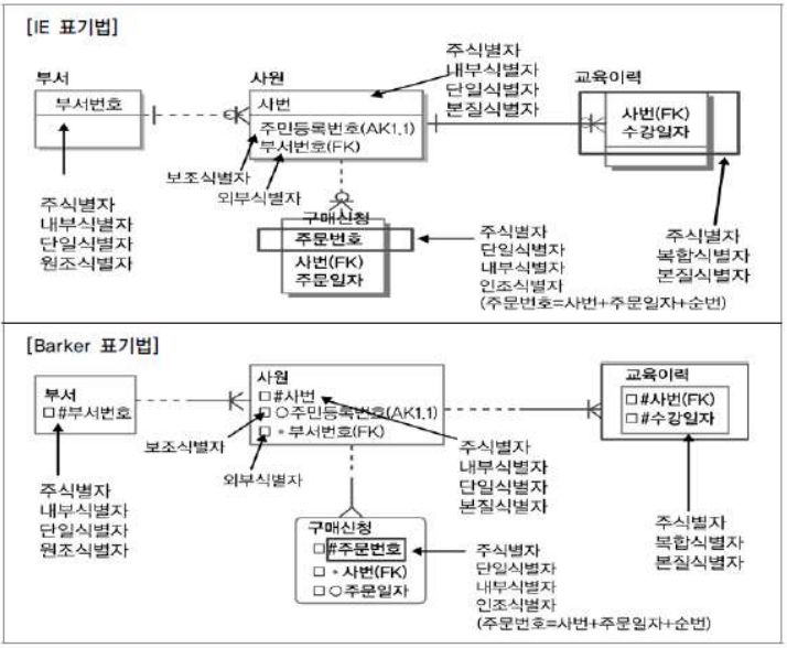 - 엔터티 간의 관계를 비식별자로 설정하면 자식엔터티에서 데이터를 처리할 때 쓸데없이 무보엔터티까지 찾아가야 하는 경우가 발생